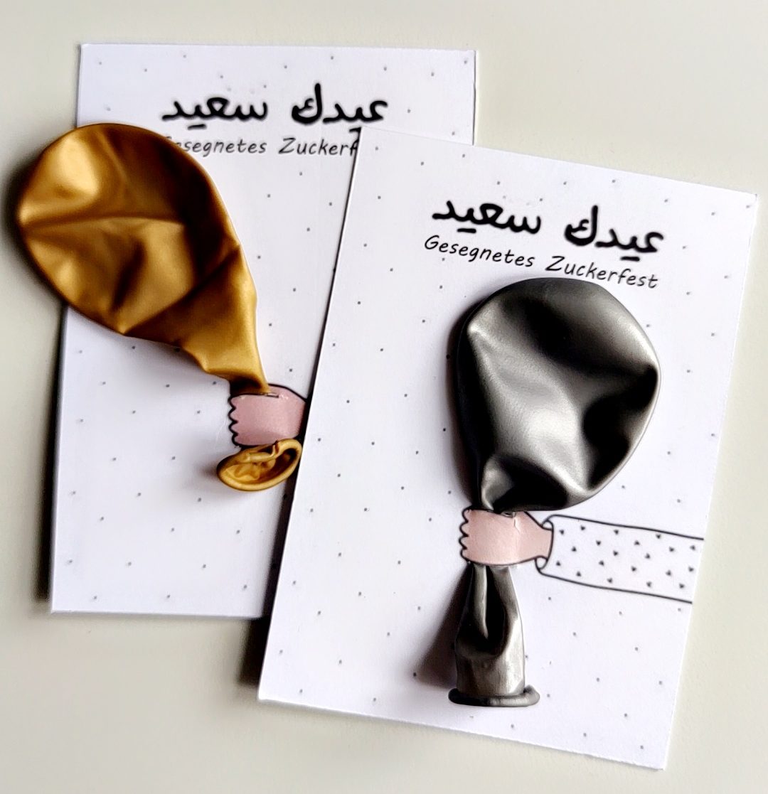 Unsere liebevoll gestalteten Eid-Karten mit Ballonhalter bringen Kinderaugen zum Strahlen! Eine süße Überraschung, die garantiert für Begeisterung sorgt – ob als Ergänzung zum Geschenk oder als charmantes Giveaway.