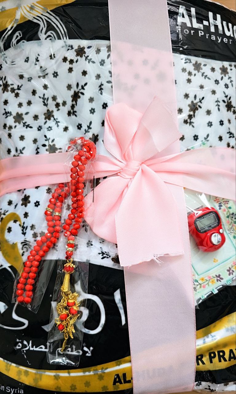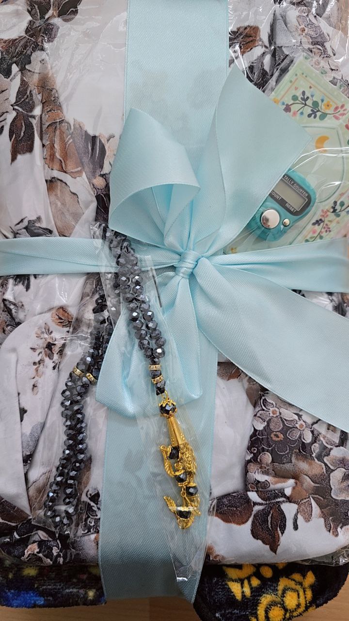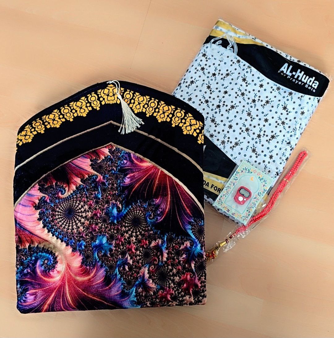 Die Muster und Farben der Gebetskleidung, Teppiche und Tasbihs werden zufällig zusammengestellt – jedes Set ist somit ein kleines Überraschungspaket. Du bestellst das Set, wir wählen mit Liebe eine harmonische Kombination für dich aus.